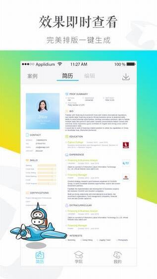 它堪称最好用的简历制作 APP,界面风格简约,工作信息精准,还有全新实时动态。知页 APP 有各类求职模板信息供你参考,是求职者的必备软件。