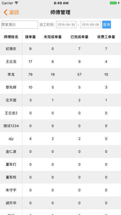 5、统计管理:可进行全网点财务筛选、全网点订单统计、师傅收入数据汇总,方便管理者处理工单。