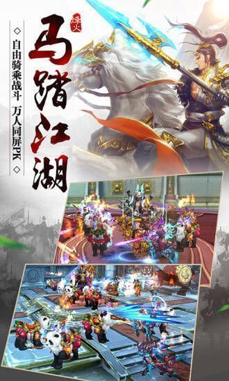 2、融合换装、即时战斗、野外地图、江湖历练、国战等多种玩法。
