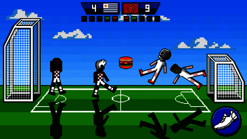 玩家可用假动作迷惑对手,轻松进球,还能扮演门将。像素球员的蹩脚动作十分有趣,令人捧腹。同时要展现意识和技巧,挡住进攻,成为胜者,还有更多有趣事物等玩家探索。