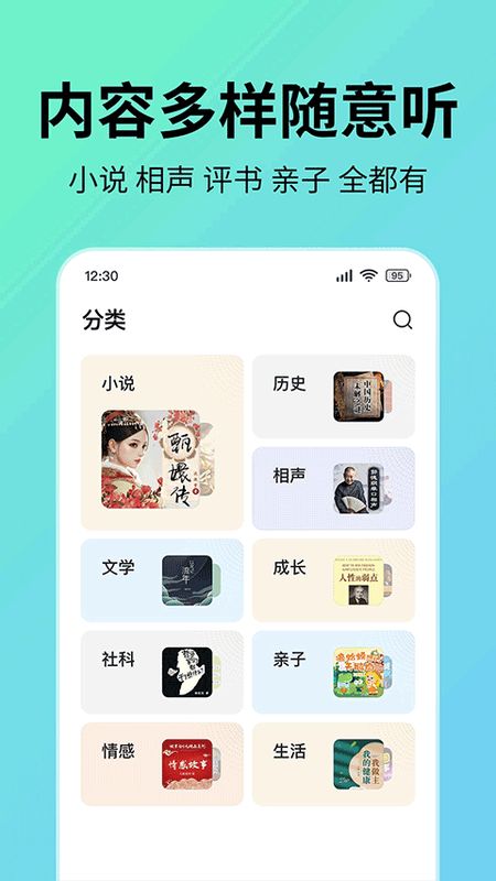 2. 全品类覆盖:包含都市、奇幻、历史、亲子、故事等30多个子品类,满足多元需求。
