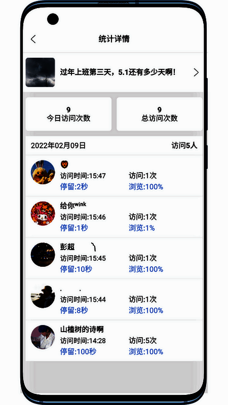 2、流量统计大师:针对不同群体,深入分析访问次数和时长,助你了解社交状况,优化互动策略。