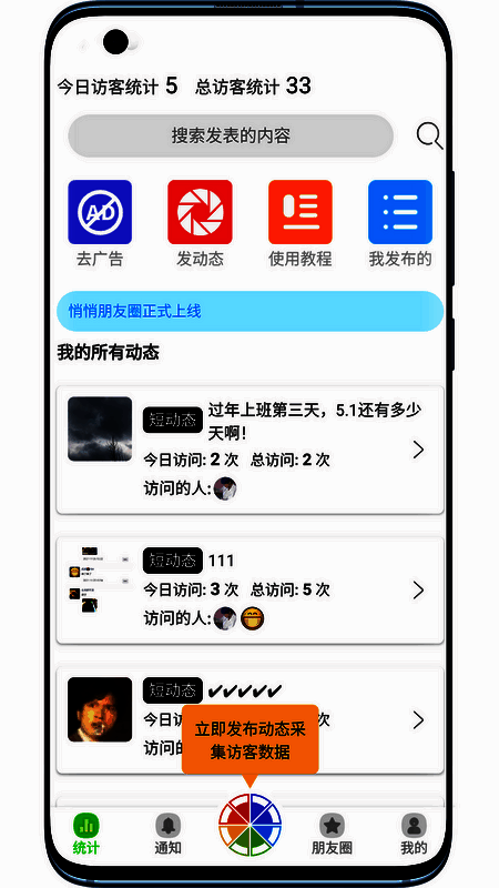 4. 情绪统计:发布动态后可快速统计点赞和评论。