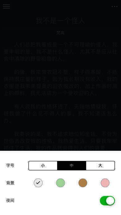 2、支持字体背景设置,字体类型有默认、泡泡体、少女体等,还有字体大小可供选择,快来一起阅读。