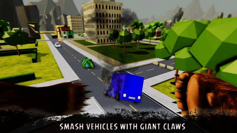汽车、大树和各类房屋都能被熊爪轻易拍毁,玩家操控的熊和大楼一般高。