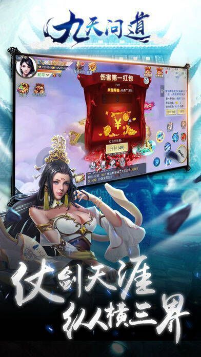 《九天问道》是一款画面极致唯美、充满古典仙侠气息的角色扮演类手游。其游戏画面采用古典风格,场景丰富恢弘,有海市楼台、雾漫灵山等绝美景观,完美诠释国风神韵。游戏剧情副本丰富,玩法多元,你可以独自闯关,也能呼朋唤友攻克难关。还有天阶骑宠、上古魔刃、神秘仙童相伴,修复古宝、传承武学,参与战场竞技、争抢BOSS,激情无限。