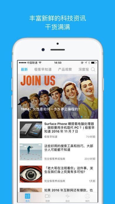 【极客live】:专业科技主播带你及时体验酷炫新品,聊聊科技产品背后的趣事。