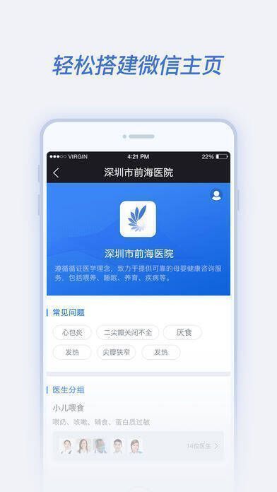 接入微信公众号:医生通过自己的公众号与患者沟通,借助微信关系链传播,建立信任,吸引更多患者。