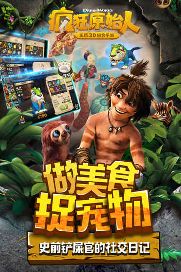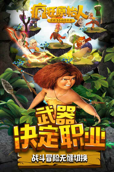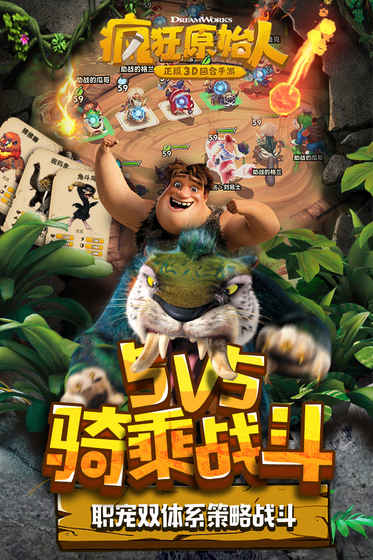 《疯狂原始人》是获得美国梦工厂动画公司制作、二十一世福克斯发行的同名电影正版授权的手游。游戏高度还原了电影里的人物以及种类繁多的原始宠物。玩家能在充满危险的远古世界,化身为手持石矛、身着兽皮的原始人,在好莱坞式诙谐幽默的剧情中,开启刺激的冒险之旅。战斗采用5V5对战模式,既保留了回合制游戏多元策略玩法,还加入了多种原始怪兽的养成收集,通过对武器进行个性化培养,打造属于自己的专属原始人家族。