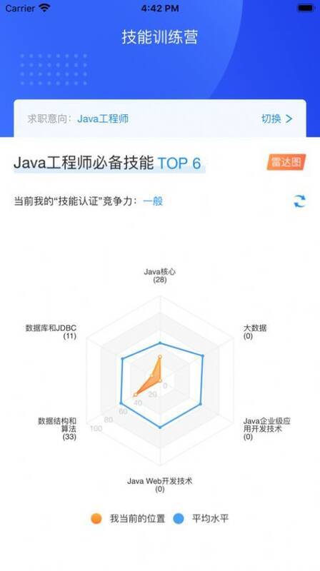 岗位技能树:呈现每个开发岗位的标准技能树,帮助用户梳理学习路径。每个技能点配有对应试题和学习视频,方便用户边学边测,检验学习效果。