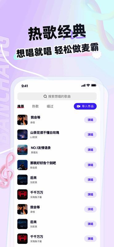 海量伴奏资源:伴唱拥有丰富的伴奏库,涵盖流行、经典、小众等多种音乐类型,用户能轻松找到心仪歌曲进行演唱。