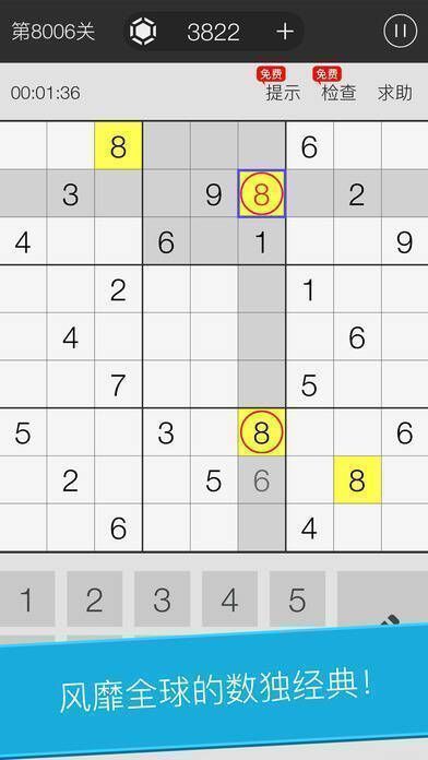 1. 超8000个免费关卡,持续海量更新;2. 每个数独谜题仅有一解;3. 配备记录可能数字的标记笔;4. 有避免数字冲突的智能色彩标注;5. 提供强力道具;6. 有详尽的用户指引;7. 记录最短通关时间。