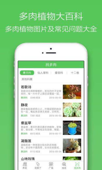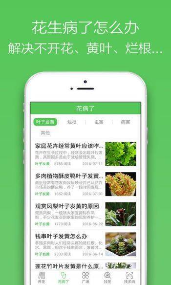 1、养花:推荐新手花卉并提供技巧;2、花病了:可在线向专家与网友咨询;3、广场:汇聚花卉养植方法技巧;4、找花:输入关键词找花卉资料;5、找多肉:介绍全种类多肉,资料全。