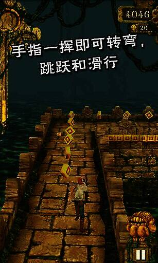 这款游戏的操作并不像多数同类游戏那样,仅靠一两个按键进行跑跑跳跳。在《神庙逃亡》中,玩家可以通过触碰屏幕完成一系列动作。