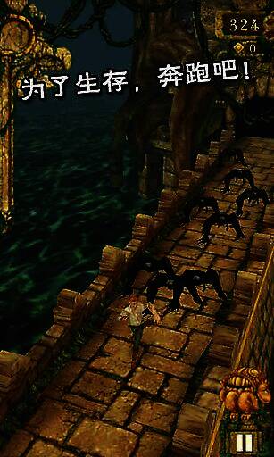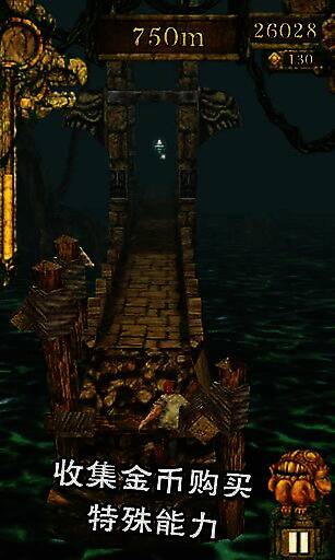 同时,玩家还能借助重力感应,通过左右倾斜手机让人物在前进过程中左右移动。除了坠崖、触碰到陷阱会导致游戏失败外,被地上的树根绊倒或撞上障碍摔倒,也会使玩家被后方的追兵追上而游戏结束。