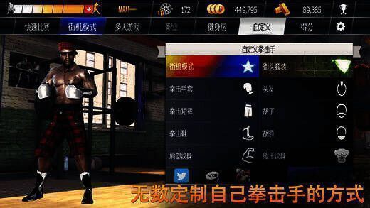 7、自定义拳击手:玩家可创建并定制自己的拳击手,有众多发型、纹身和装备可供解锁。通过迷你游戏训练保持最佳状态。