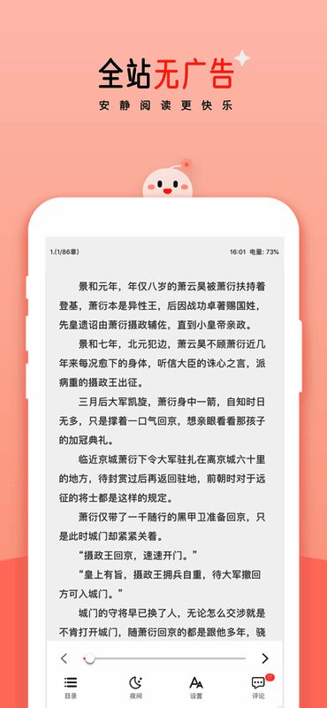 2、为给用户提供舒适无扰的阅读体验,软件实现全站无广告,杜绝广告弹窗的干扰。