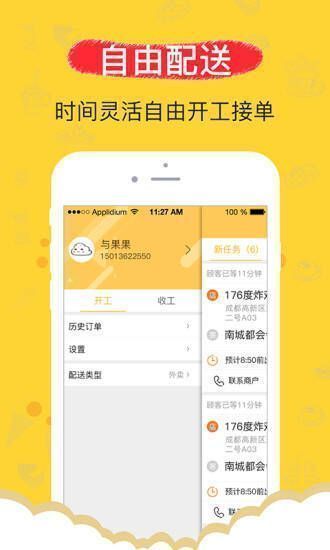 2、工作时间灵活,可自由开工接单,查询配送订单记录,十分方便快捷;