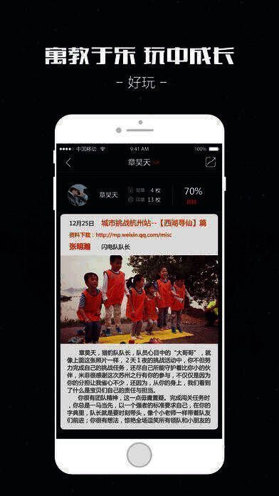 【定位】儿童户外活动专家;【口号】宝贝走天下 享趣就出发;【愿景】引领儿童生活新时代,成为创造中国儿童新生活方式的公司;【使命】影响中国亿万儿童,探索属于自己的世界;【特色】安全、好玩、省心;【5 - 13岁】针对5 - 13岁孩子特点,独家研发产品体系和线路,以“体验 + 情境”模式促进全面成长;【城市】覆盖杭州、上海等多个城市,更多城市持续开通中。