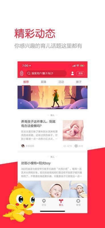 它为关联的儿童手表提供高清通话、实时定位、互动聊天等功能,还提供海量育儿知识、各领域顶级教育专家资源以及丰富多彩的活动,和家长一同守护孩子健康快乐成长。