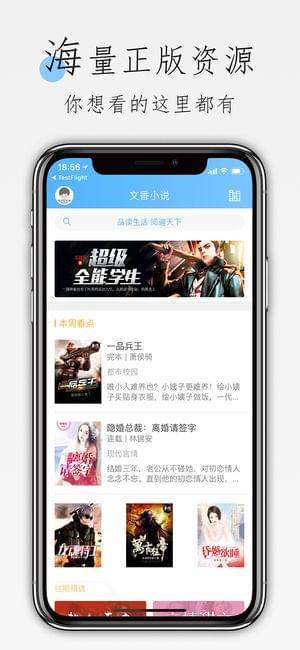 《文香小说》是一款不可错过的正版小说阅读平台。它的阅读资源极为丰富,能提供全面的榜单分类,助力你轻松挑选心仪好书。同时,简洁清爽的软件界面还能带来绝佳的视觉体验。
