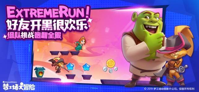 《梦工场大冒险》是一款以知名电影动漫角色为蓝本打造的跑酷冒险休闲游戏。玩家将和《功夫熊猫》《驯龙高手》《疯狂原始人》《怪物史瑞克》《马达加斯加》这五部电影里的动漫角色一同开启跑酷闯关之旅。