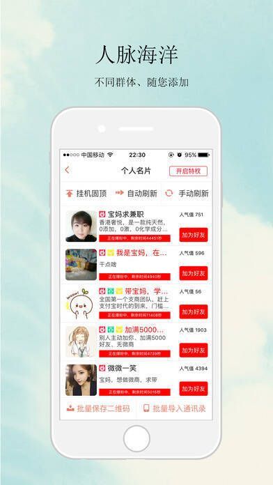 【个人名片】 - 在全国范围内展示,轻松收获超高人气。使用微商客源宝,可免费添加好友、寻觅客源、结交人脉,实现高速引流。