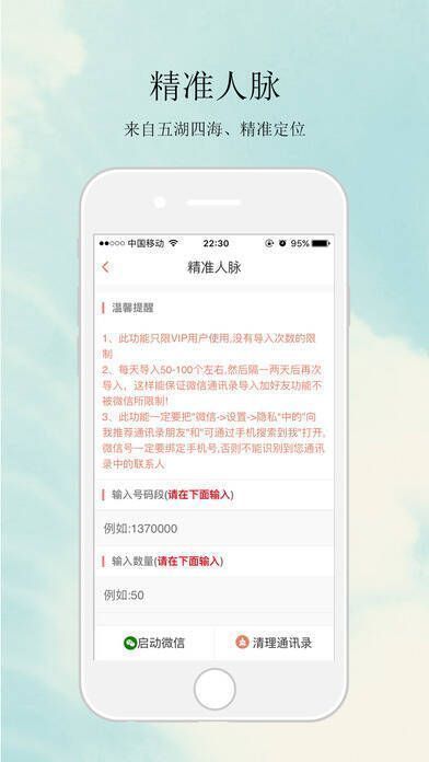 【目标客户】 - 能批量添加目标粉丝。人脉助手可按任意号码段一键添加人脉。