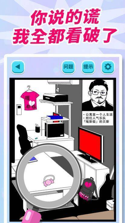 超有趣且魔性的游戏来啦!在《你不必解释你为什么说谎》里,玩家要去寻找男友出轨的证据,看你能否成功找到呢?这是一款休闲类游戏,物品数量不算多,而且还挺烧脑。快叫上你的好闺蜜一起玩,比比谁找得准。