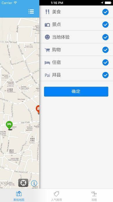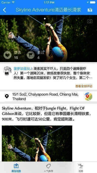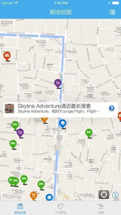 清迈离线旅游地图,有清迈详尽离线地图,地图标注中文吃喝玩乐信息并配图文,方便旅游与导航,适合自由行游客。支持离线查看,节省流量且访问快,是清迈旅行必备工具。用户还能在App上轻松完成从看地图到旅游预订流程。
