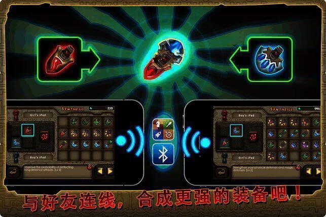 2、具备特殊的合成功能,可通过GameCenter联机进行装备合成,合成后能得到更强的装备,或让装备兼具两种能力,使玩家在战斗中更强大,快邀好友一起合成。
