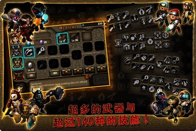 6、有超过70种装备,玩家击败敌人获取装备来强化自身。
