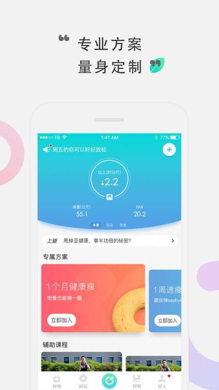 汇集海量健康数据,形成独有的大数据分析模型,为你匹配最适合身体需求的运动加饮食方案。