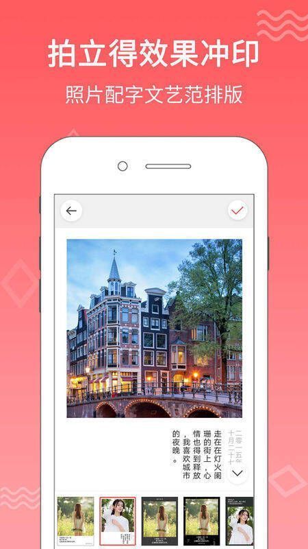 2. 拍立得:可讲述每张照片背后的故事,有创意的拍立得样式。能批量为照片配字,提供多种字体,支持语音配字,既便捷又能冲印、分享。