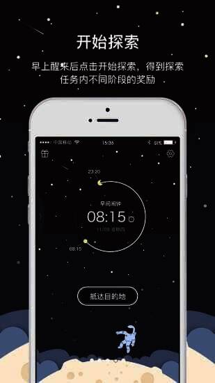 《早睡飞船》APP致力于帮助用户养成早睡的好习惯。在这个APP里,完成每日作息任务,就能在神秘地图中前进,还能获得精心制作的地图分享卡片。夜间,还有精心搭配的睡眠音乐伴你入眠。登上《早睡飞船》,告别熬夜吧。