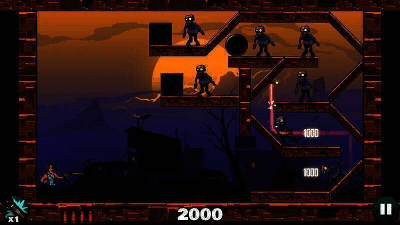游戏操作简单易懂,只需点击屏幕,玩家就能发射子弹进行射击。发射子弹时,玩家能看到发射轨迹和反弹轨迹,借此可一次性消灭更多僵尸。玩家可多次尝试,找到最佳发射与反弹路径,完成任务目标。