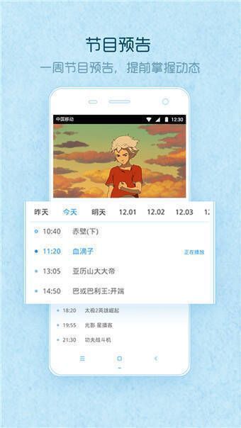 1、提供电视直播、电影、热门综艺、动漫等多种类型节目;