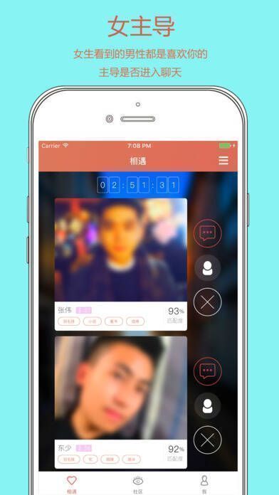 其设计理念是“男主动,女主导”,男性需充分利用每日挑选次数选心仪女性,女性看到的是从众多人中选中自己、喜欢自己的男性,再由女性决定是否进一步了解。