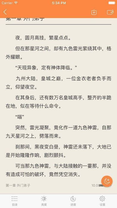 3、贴心阅读功能:全应用夜间模式,更护眼。还有多种翻页效果、文字大小调节、变换阅读背景、阅读亮度调整、进度跳转、目录书签等强大功能。