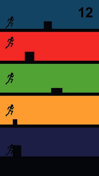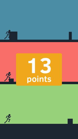 这款游戏在玩法上有所创新,充分发挥了多点触控屏幕的优势。玩家要同时控制多条跑道上的角色运动,躲避障碍物开启无尽冒险,只要有一个火柴人碰到墙壁,游戏便宣告结束。