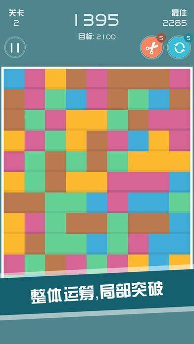 3、玩家需运用一定策略,让相邻同色方块数量尽可能多,如此便能获得更高分数。