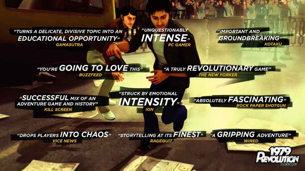 《1979年革命:黑色星期五》是一款基于真实历史事件改编的生存冒险游戏。它凭借逼真画面,让玩家亲身融入一场革命之中。喜欢历史或AVG冒险游戏的玩家不容错过,赶紧下载体验吧!