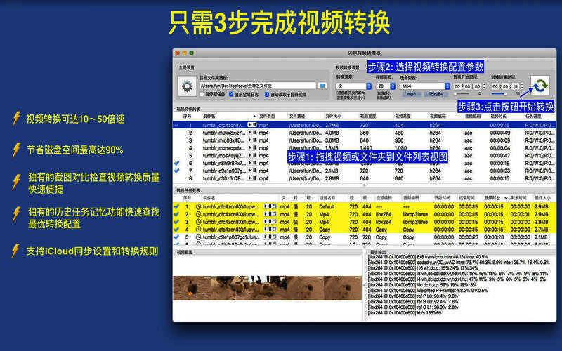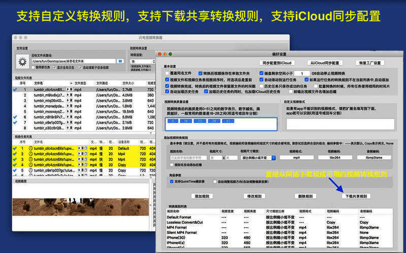 5. 支持iCloud同步软件设置和视频转换规则,使用同一Apple ID登录的多台设备可同步设置,所有用户能同步转换参数,节省时间。