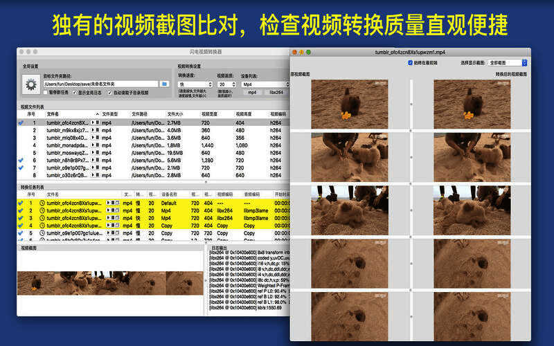 3. 具备独有的视频画质比较功能,可方便对比转换前后的视频截图,利于选择合适的压缩参数。