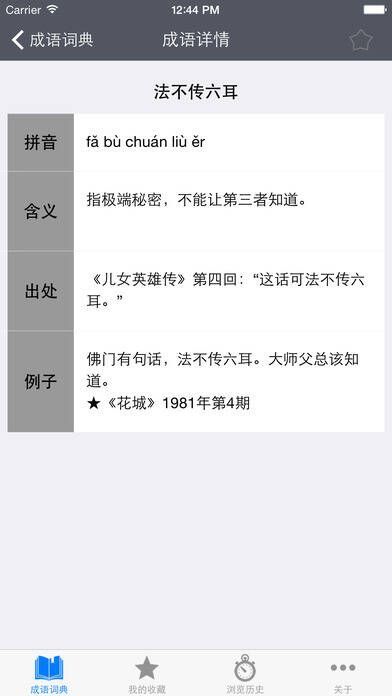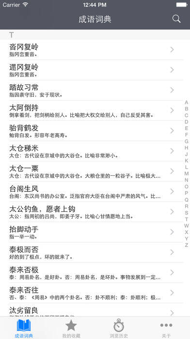 《成语词典》是一款极为专业的成语学习软件。它拥有超 3 万条成语,详细呈现成语的发音、含义、出处、例子等信息。用户可将常用成语收藏备用,还能查看浏览历史,方便随时回顾。该软件无需联网,使用便捷。