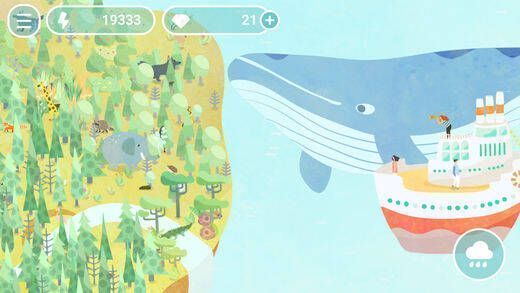 有舒压、沉浸感十足的绘本风格美术视觉;游戏事物随时间消长的特殊机制;动态混音系统,背景音乐会随画面丰饶度变换;近50种生物及10种不同地形待探索,人为事件介入岛屿发展,每个选择利弊共存。