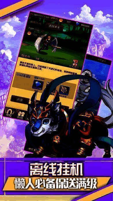 1、剧情宏大磅礴,英雄苏醒穿越童话世界,开启魔法之门,感受挂机新玩法。2、轻松养脑,离线战斗不停。3、福利丰富,钻石、金币、材料充足,十连抽也轻松实现。4、玩法多样,激战恶魔、拯救天使,你都是主角。5、无限挂机,解放双手升级,战力提升,挑战竞技。
