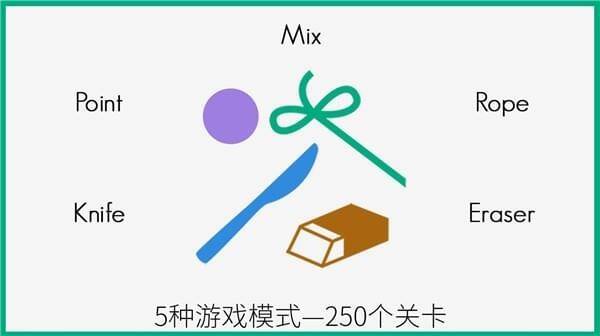 1. 拥有250个特色关卡,结果随机,每次重玩同一关卡结果不同;2. 具备5种游戏模式,分别是点、清除、绳子、刀子和混合模式;3. 连续多次在同一关卡获胜,可获得优胜线段并赢取奖章;4. 每日挑战仅有一次机会;5. 适合通勤或休息时玩,一局游戏几秒就能完成,说不定能连赢20局。