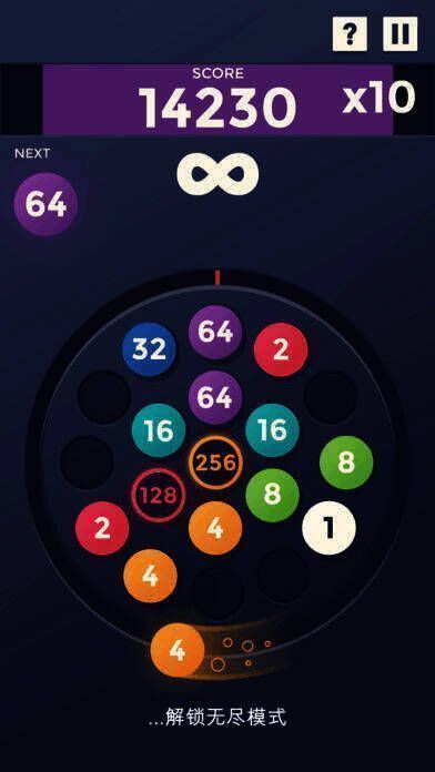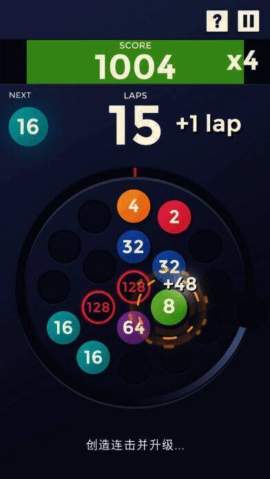 2、圆板上独特的匹配与合并玩法:数字球绕圆板旋转,玩家点击发射,碰撞合并数字创造连击拿高分,合并颜色数字可升级,抓准发射时机能产生非凡连锁效果。