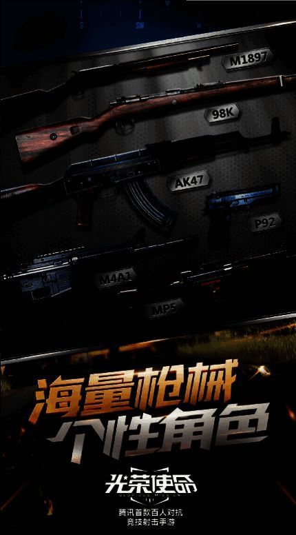 《光荣使命》是腾讯出品的百人竞技3D枪战手游。玩家在游戏里接受集训考验,在封闭世界中凭借实力与生存能力坚持到最后。能用掌上移动设备随时畅玩,还能和兄弟并肩作战、生死与共。